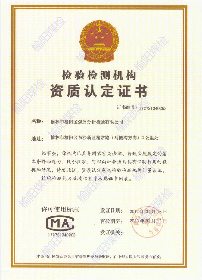 榆林市榆陽區(qū)煤質(zhì)分析檢驗有限公司是一家從事煤炭質(zhì)量檢驗檢測的公司,其前身是陜西省榆林市榆陽區(qū)煤炭公司質(zhì)量檢驗部,成立于2005年,是其內(nèi)設(shè)機構(gòu)。經(jīng)過十多年的努力與發(fā)展,檢驗室各方面的條件與能力都達到了一定規(guī)模,并于2016年7月29日由陜西省榆林市榆陽區(qū)煤炭公司出資注冊為獨立法人企業(yè)。2017年1月13日,公司順利通過檢驗檢測機構(gòu)資質(zhì)認(rèn)定評審工作并取得了由陜西省質(zhì)量技術(shù)監(jiān)督局頒發(fā)的《檢驗檢測機構(gòu)資質(zhì)認(rèn)定證書》。